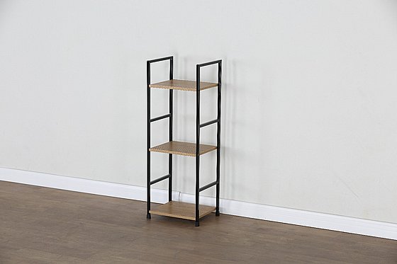 שילוב של מתכת מושחרת ומדפי עץ בגוון אלון