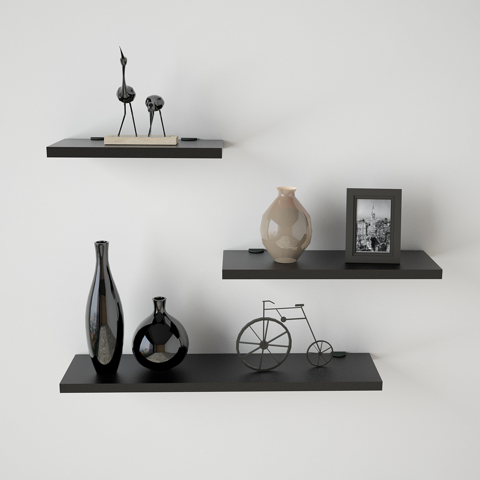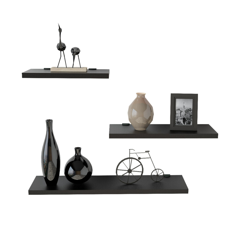 שלישיית מדפים צפים בעיצוב מודרני ומרשים, המגיעים באורכים שונים ומיועדים לשדרוג עיצוב חלל הבית או המשרד.