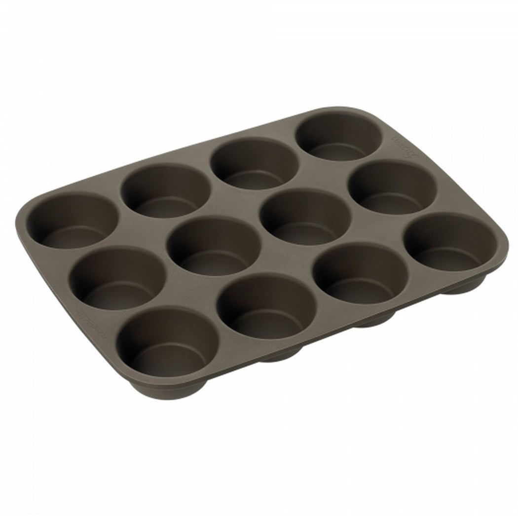 תבנית לאפיה מסיליקון פלטינה® עם 12 שקעים, המשלבת גמישות עם יציבות. הודות לשולי התבנית הקשיחים, ניתן להוציא כל מאפה בקלות ללא הידבקות. עשויה מסיליקון איכותי המונע שחרור רעלים, היא מתאימה לטווח טמפרטורות רחב מ-40- עד 240 מעלות.