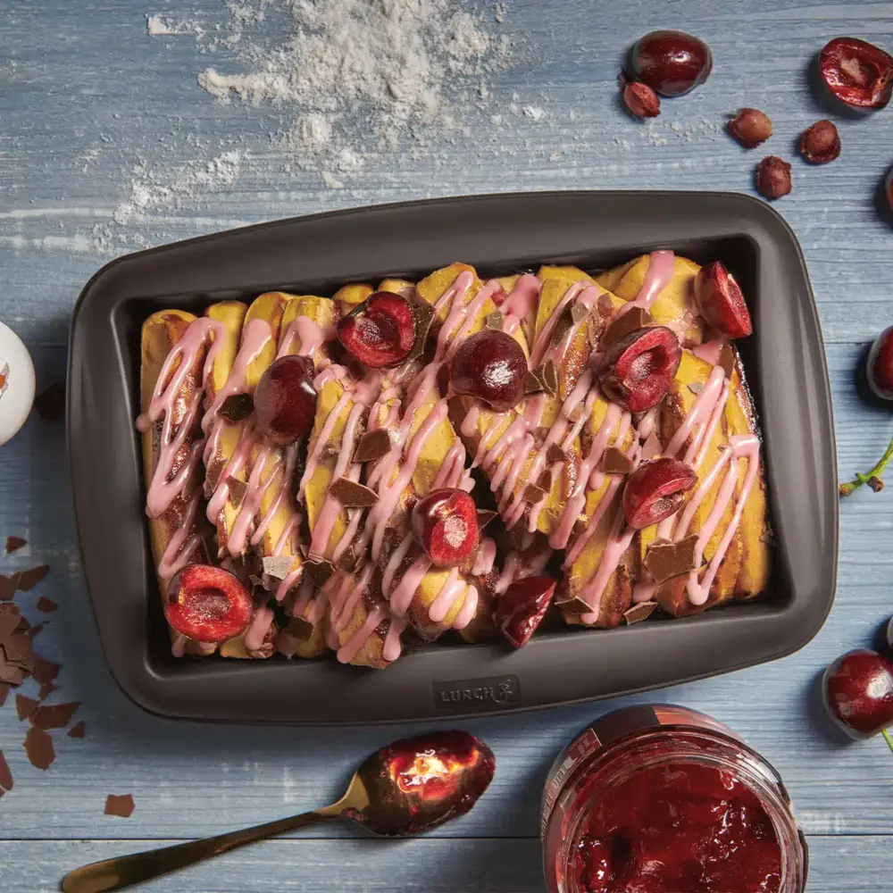 תבנית סיליקון מלבנית של מותג LURCH, מתאימה להכנת מנות אישיות באייר פריי ובתנור. יצאת בזכות השימוש בסיליקון פלטינום איכותי לולא BPA ללא ציפוי וללא שימון. מתאים לשימוש במגוון מכשירים במטבח, כמו תנור, מיקרוגל ומקפיא. המוצר מציע גמישות ויציבות, אינו משחרר חומרים מסוכנים ונותן מענה נוח להכנת מנות בריאות ומדויקות.