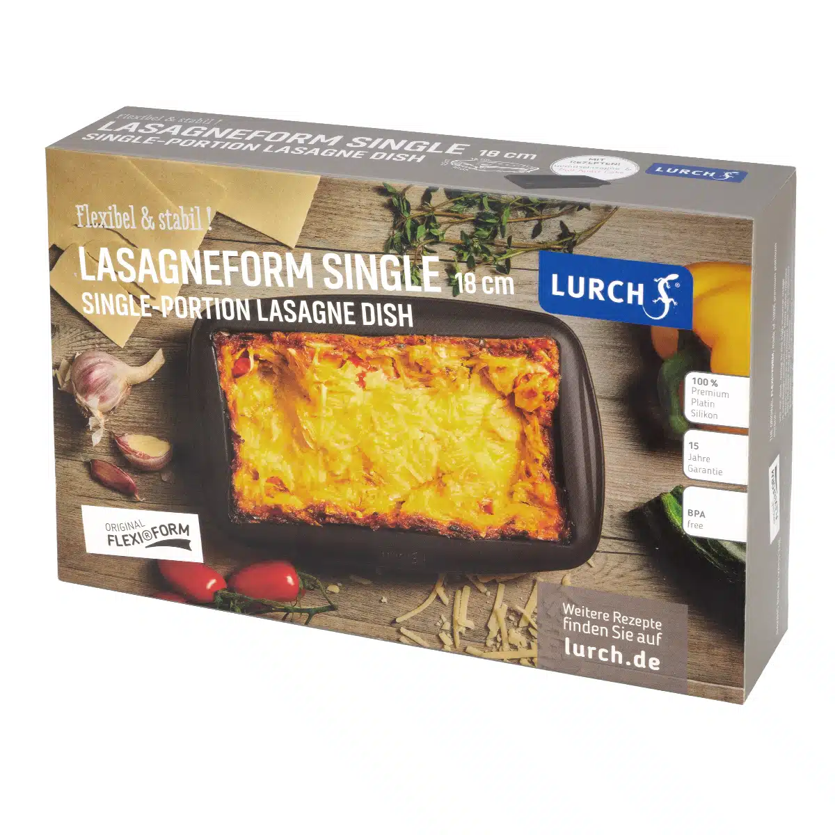 תבנית סיליקון מלבנית של מותג LURCH, מתאימה להכנת מנות אישיות באייר פריי ובתנור. יצאת בזכות השימוש בסיליקון פלטינום איכותי לולא BPA ללא ציפוי וללא שימון. מתאים לשימוש במגוון מכשירים במטבח, כמו תנור, מיקרוגל ומקפיא. המוצר מציע גמישות ויציבות, אינו משחרר חומרים מסוכנים ונותן מענה נוח להכנת מנות בריאות ומדויקות.