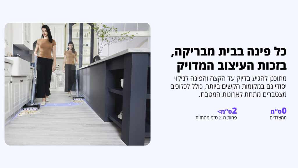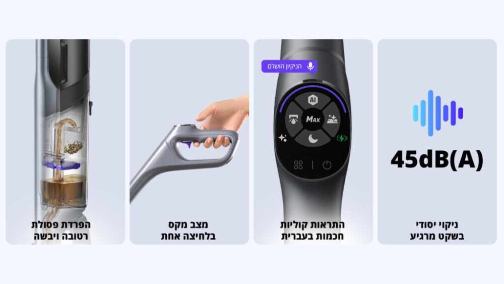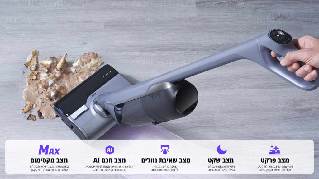בינה מלאכותית (AI) לזיהוי לכלוך ומגוון תכונות חכמות נוספות. הדגם מספק ניקיון יסודי תוך מינימום תחזוקה,
