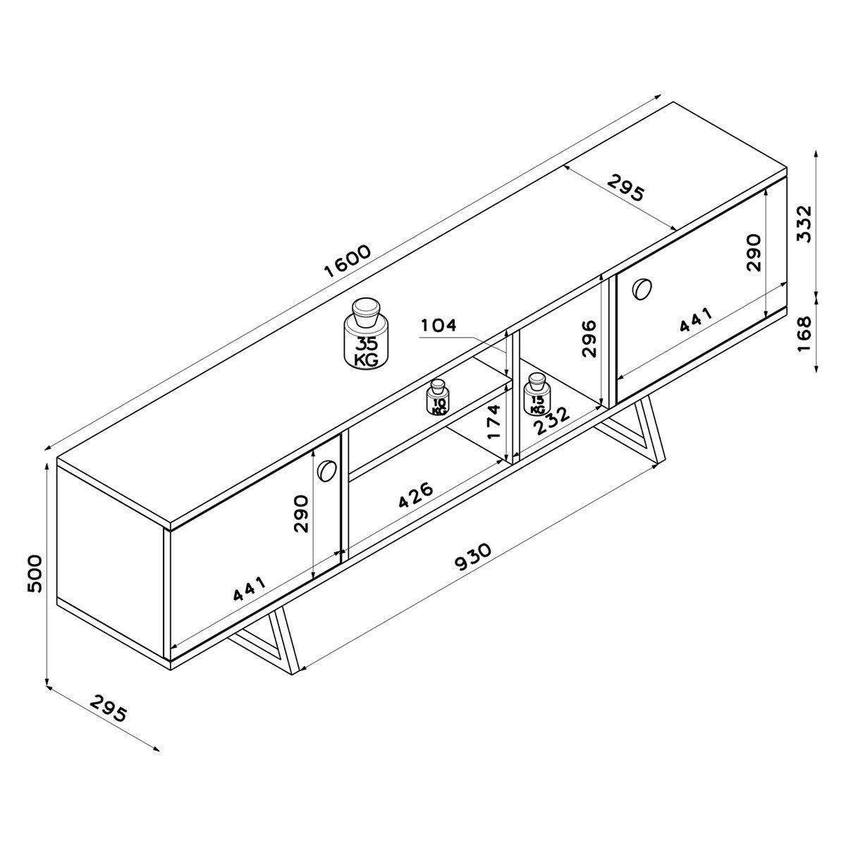חומרים: רגלי המזנון עשויות פלדה חזקה. עשוי שבבית דחוסה בעובי 18 מ"מ בציפוי מלמין באיכות גבוהה.